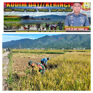 Semurup- Babinsa Koramil 417-03/AH Serda Serma Novriwan melaksanakan kegiatan membantu petani panen padi di desa Koto Datuk Kec. Air Hangat Barat Kab.Kerinci Minggu (5/3/2023)